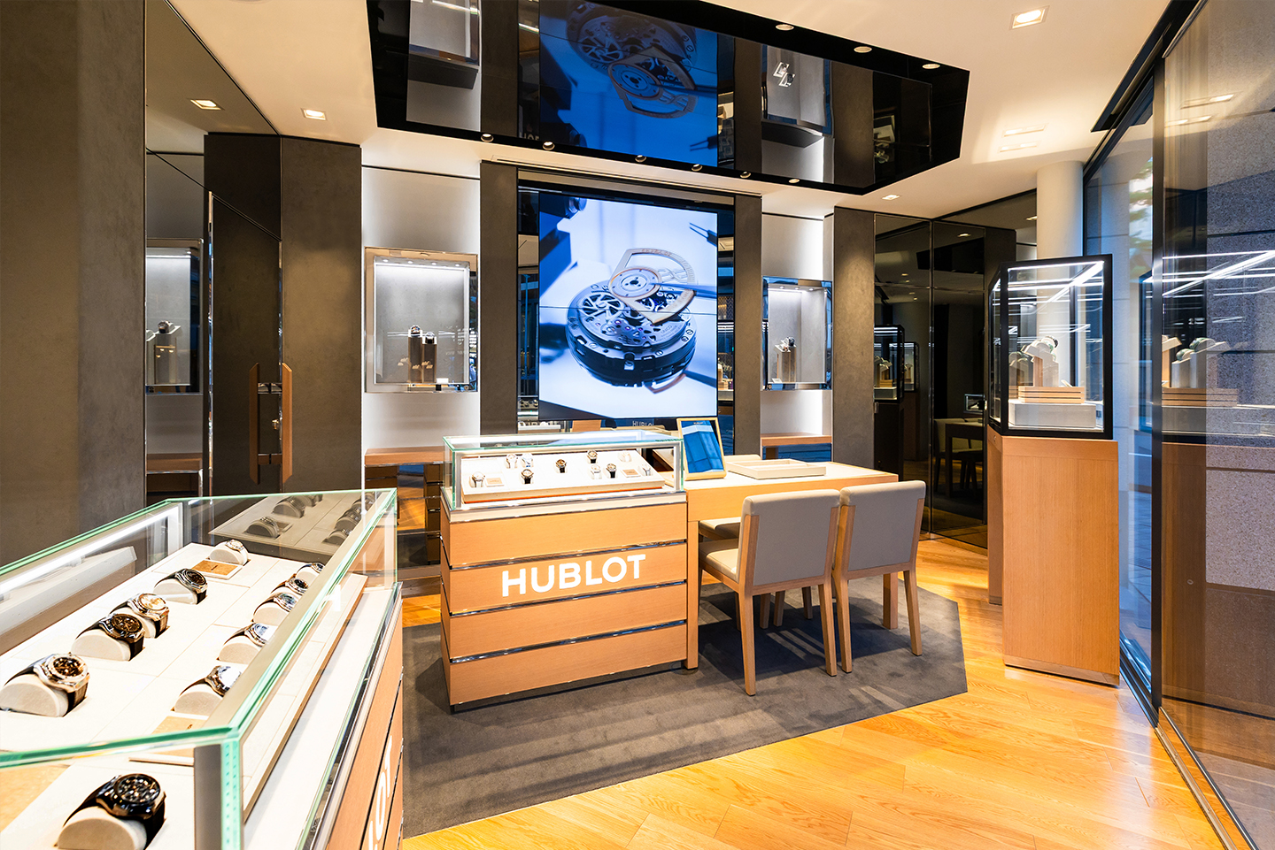 サロン1階にはウブロのアイコンウォッチ「ビッグ・バン」をはじめ、限定モデルや人気モデルなど、革新的でダイナミックなアプローチによって生まれたタイムピースをご覧いただけます。また、2階、3階はソファセットを設えたラグジュアリーな雰囲気のなか、ゆっくりと時計をお選びいただける特別な空間となっています。皆様のご来店を心よりお待ちしております。