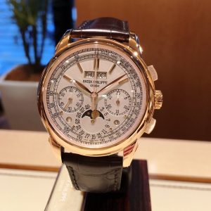 ローズゴールドのケースにオパ-リン文字盤、マット・ダークブラウンのベルトが柔らかく、