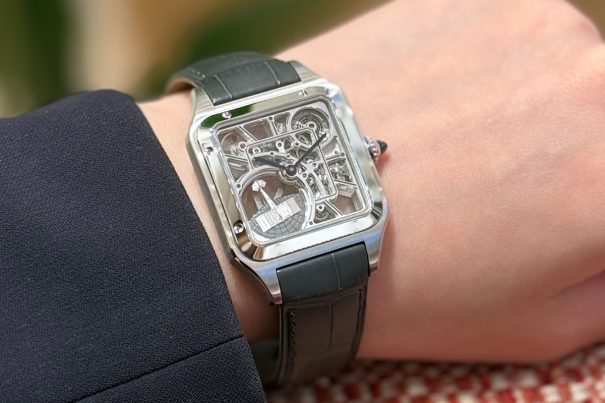 スクエアケースに、ケースとほぼ同じ幅の革ベルトを取り付ける腕時計は大変珍しく画期的なデザインでした。100年以上も前に誕生したケースデザインをぜひお手に取ってご覧ください。