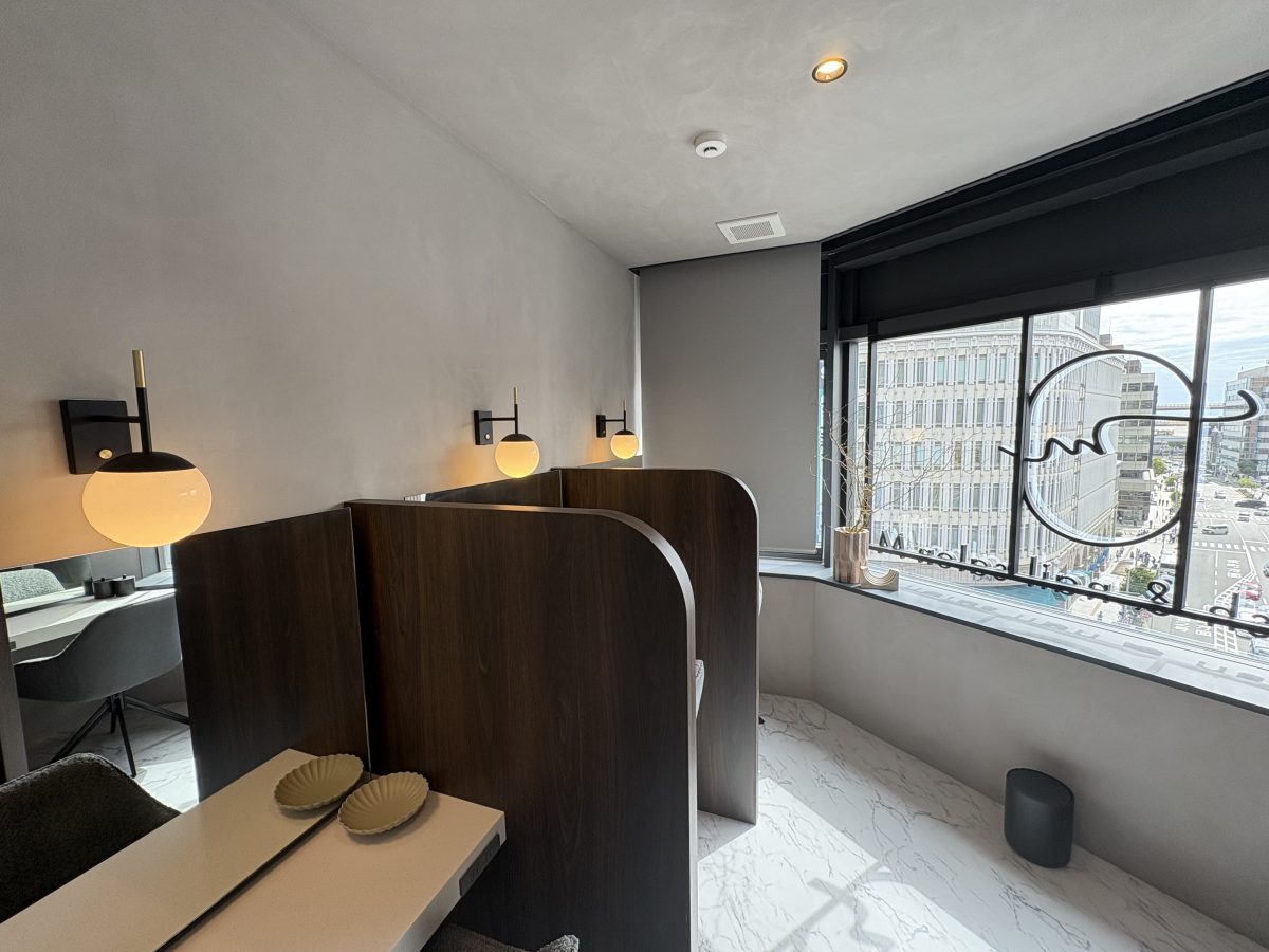 施術あとのメイク直しスペースも自然光がたっぷりと入ってとってもメイクが捗りそう♪