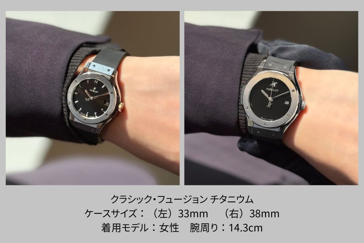 ご自身の腕に乗せた時のフィット感や存在感、ファッションとの相性などは実際に試着してみないと分からない部分だと思います。