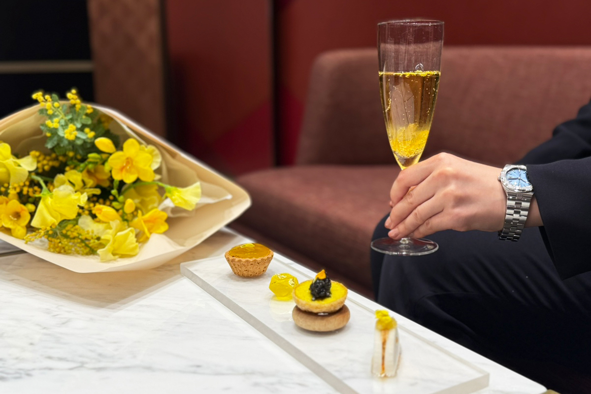 またミモザの黄色をテーマにした軽食やドリンクをご用意し、華やかな空間の中でヴァシュロン・コンスタンタンのレディスウォッチをご覧いただきました。