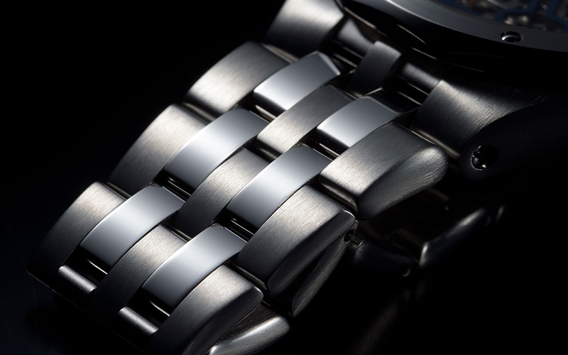 時計の主要素材は316Lステンレススティールを採用。「316L」は医療機器にも使用される高品位のステンレスです。部位によって鏡面・ヘアラインなど複数の仕上げを施しています。ベゼルも、曲線と直線を組み合わせ、面の美しさが際立つ12角形ベゼルに仕上げています。