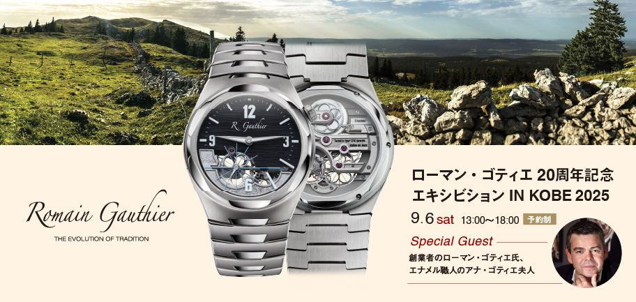 2005年にスイス・ジュウ渓谷で創業したローマン・ゴティエにとって、2025年は20周年を迎えるアニバーサリーイヤーです。これを記念して、「ローマン・ゴティエ 20周年記念 神戸エキシビション2025」を開催いたします。