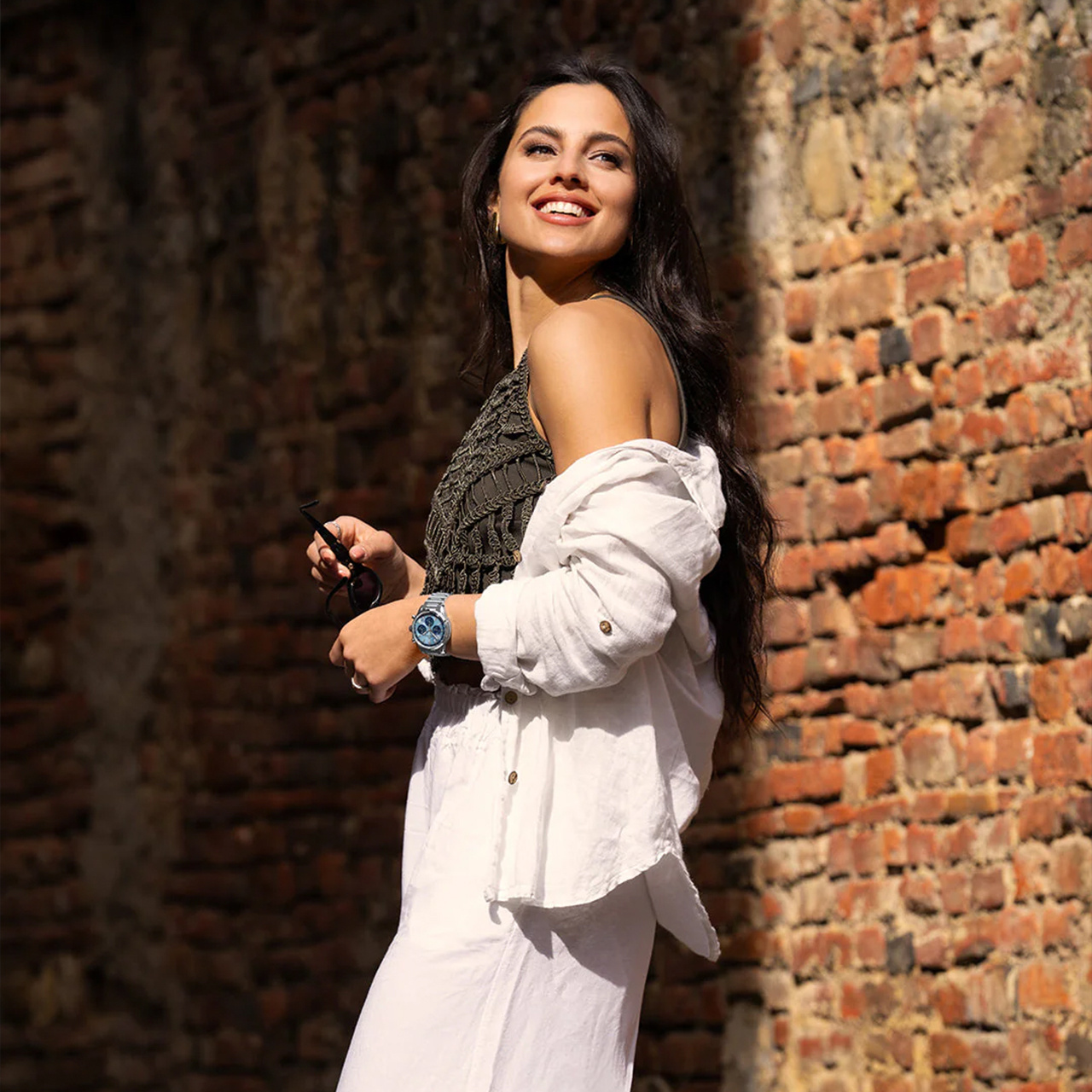 フリーダム・コレクションは、世代を超えて受け継がれる自由の精神を表現したコレクションです。それは大自然の中で過ごす開放感ともつながっています。スカイブルーのダイヤルを含むヴィンテージ風のデザイン要素は、60年代の美学を呼び起こします。