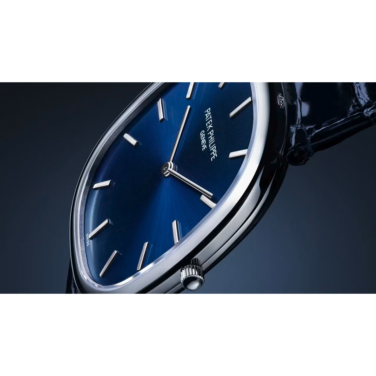 ケースには希少なプラチナを採用し、深みのあるブルーサンバーストダイヤルと見事に調和。ゴールドのアプライドアワーマーカーと細身のゴールド針が、静謐な文字盤に上質なコントラストを生み出し、洗練されたエレガンスを際立たせます。