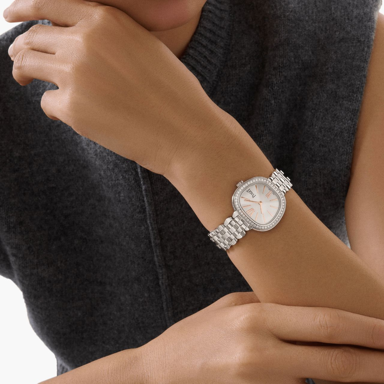 しなやかに腕に沿うブレスレット、磨き上げられたプレシャスメタルの輝き、そして精緻なクラフツマンシップ。ウォッチメイキングとジュエリーアートの頂点を極めるピアジェだからこそ生み出せる至高の一本です。