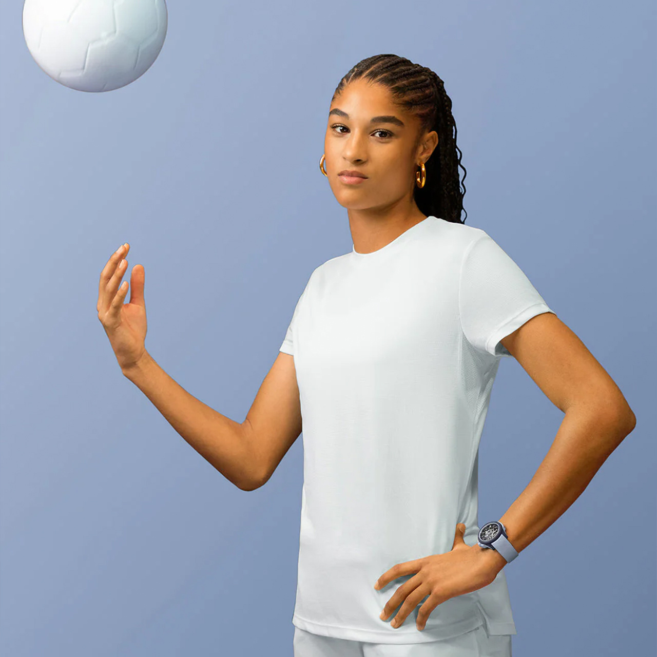 ミラネーゼパターンが施されたアイスブルーラバー ストラップは一体感のあるルックスを演出し、手元にアクセントを添えながらも着け心地の良さを提供。スポーティでありながらエレガントな雰囲気も兼ね備え、初めての本格機械式ウォッチとしても、既存の時計コレクションに加える一本としても魅力的な選択肢です。