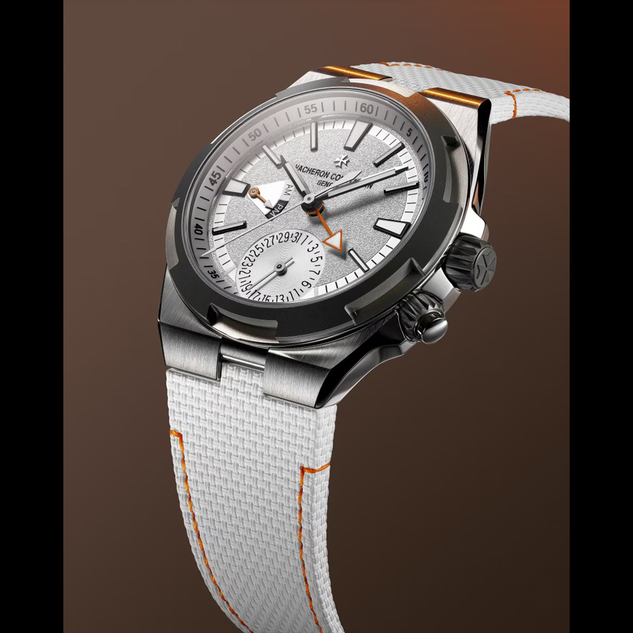 ヴァシュロン・コンスタンタンの「デュアルタイム」は、ブランドを代表するオーヴァーシーズコレクションの中でも、実用性と洗練されたデザインを兼ね備えた一本です。2つのタイムゾーンを同時に表示できるデュアルタイム機構に加え、6時位置のポインターデイト、9時位置のAM/PM表示により、直感的で視認性の高いダイヤルレイアウトを実現しています。
