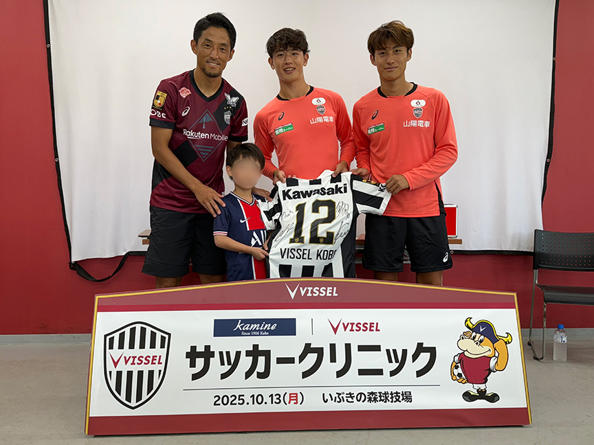 弊社が2023年よりパートナーを務めるサッカーJ1リーグ「ヴィッセル神戸」のご協力のもと、先日「カミネ×ヴィッセル神戸 サッカークリニック」を開催いたしました。